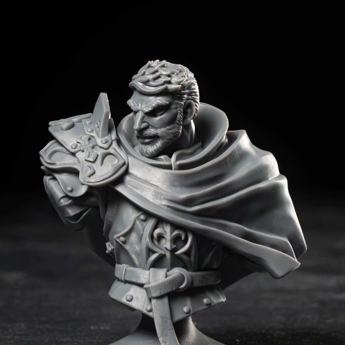 Due to the miniatures being 3D printed, print layers, small surface irregularities and micro-supports will be visible in some parts of the print.