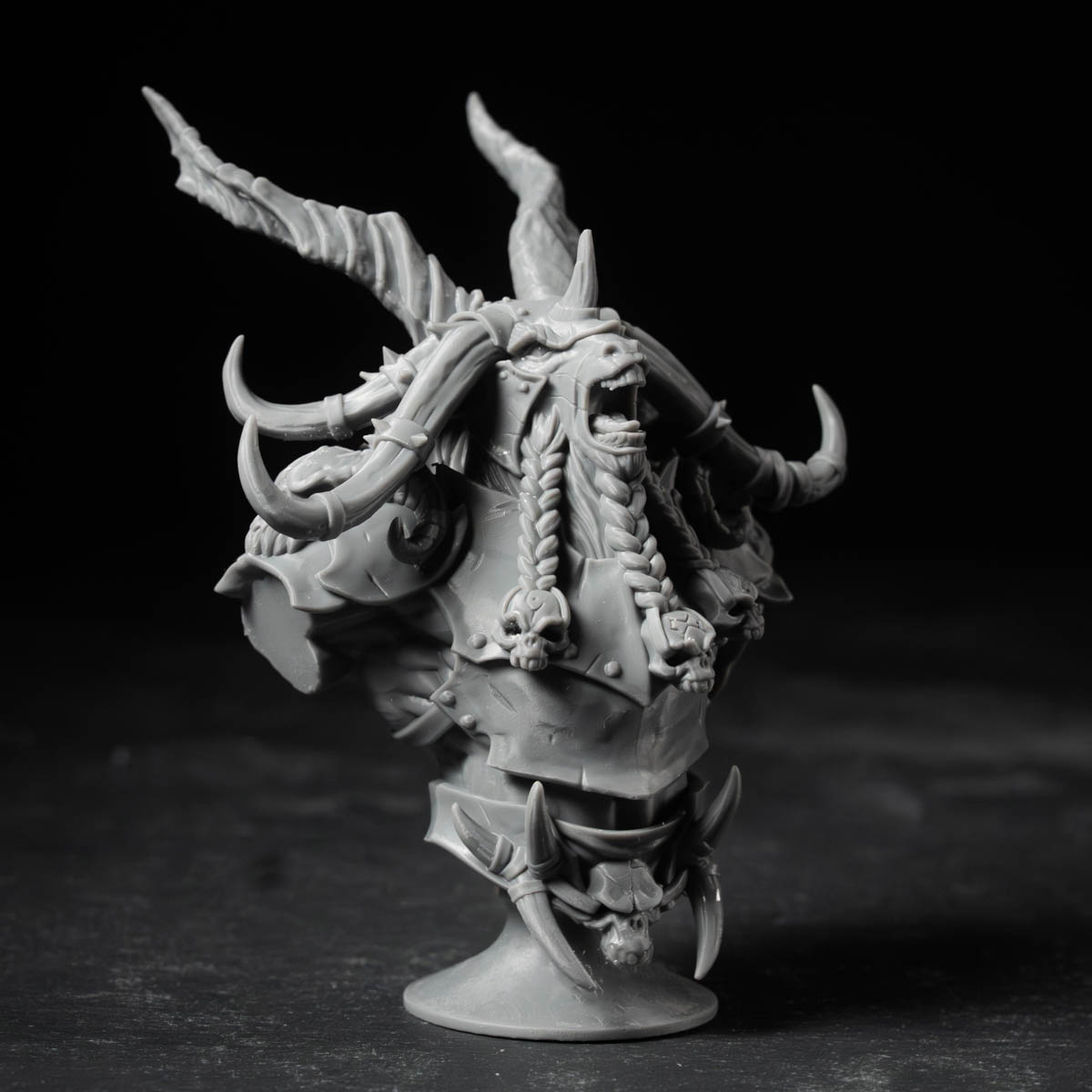 A high-detail 3D printed bust miniature designed for display. With sharp facial features, expressive sculpting, and a smooth finish, it’s the perfect piece for collectors and painters who want a striking showcase bust.