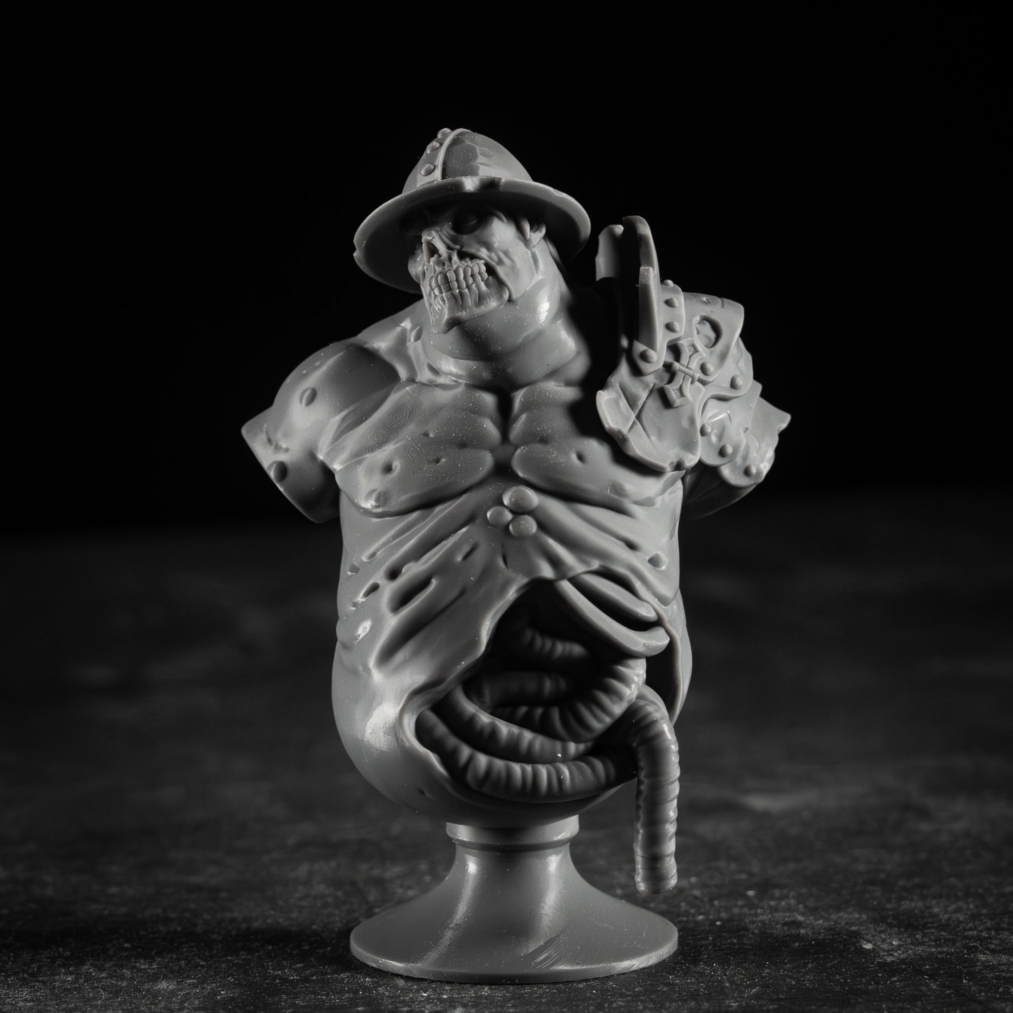 A high-detail 3D printed bust miniature designed for display. With sharp facial features, expressive sculpting, and a smooth finish, it’s the perfect piece for collectors and painters who want a striking showcase bust.