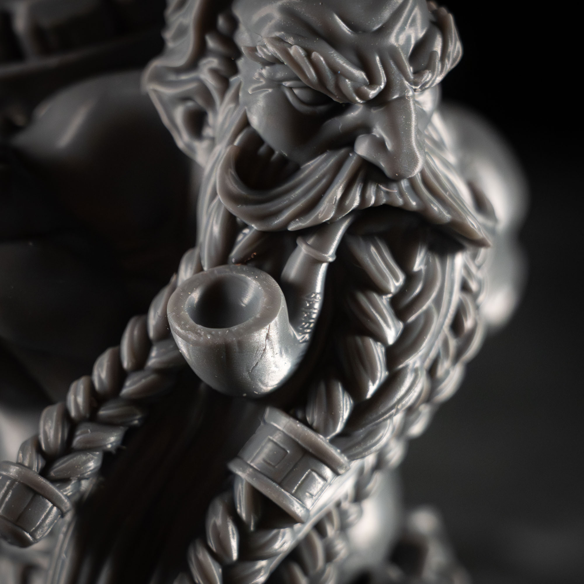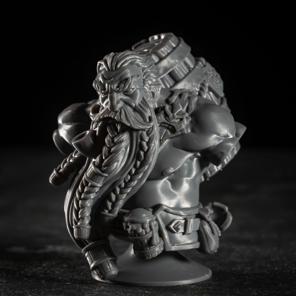 A high-detail 3D printed bust miniature designed for display. With sharp facial features, expressive sculpting, and a smooth finish, it’s the perfect piece for collectors and painters who want a striking showcase bust.