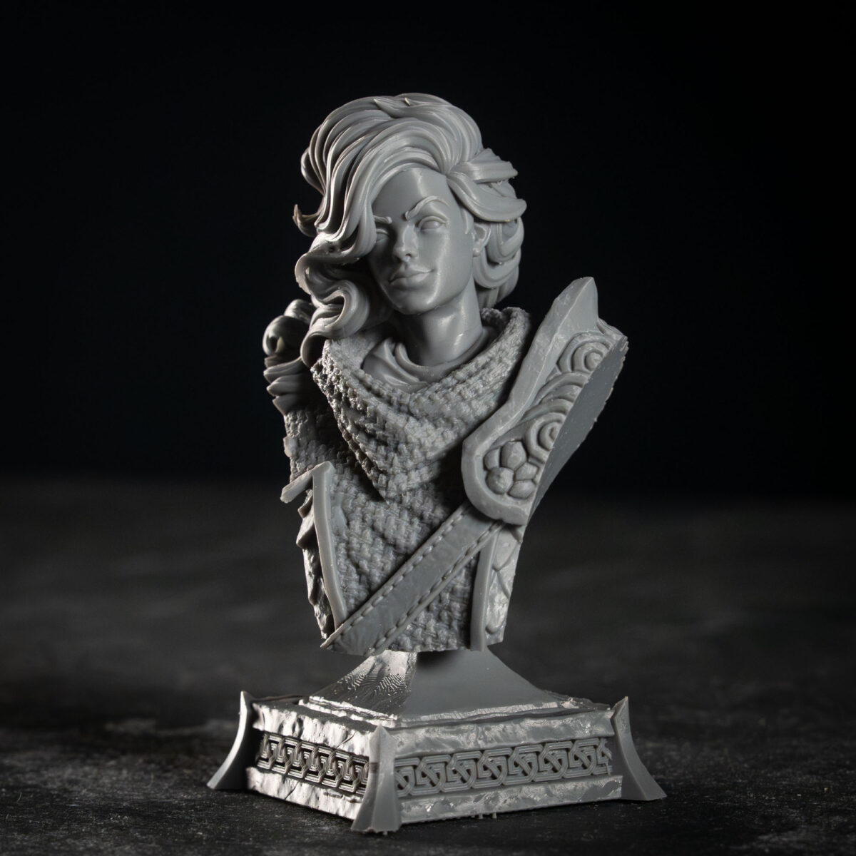 A high-detail 3D printed bust miniature designed for display. With sharp facial features, expressive sculpting, and a smooth finish, it’s the perfect piece for collectors and painters who want a striking showcase bust.